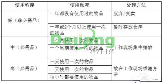 3.依据上述归类清除当场物品,当场只维持必需的物品,清除垃圾和没用物品。