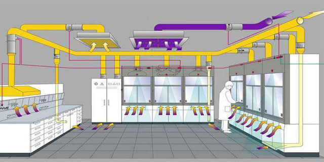 集中排风是通过集中排风系统将多个实验室或工作区的空气污染物汇集到一个排风系统中,进行统一处理。可以采用PLC控制系统或者VAV控制系统进行集中排风。