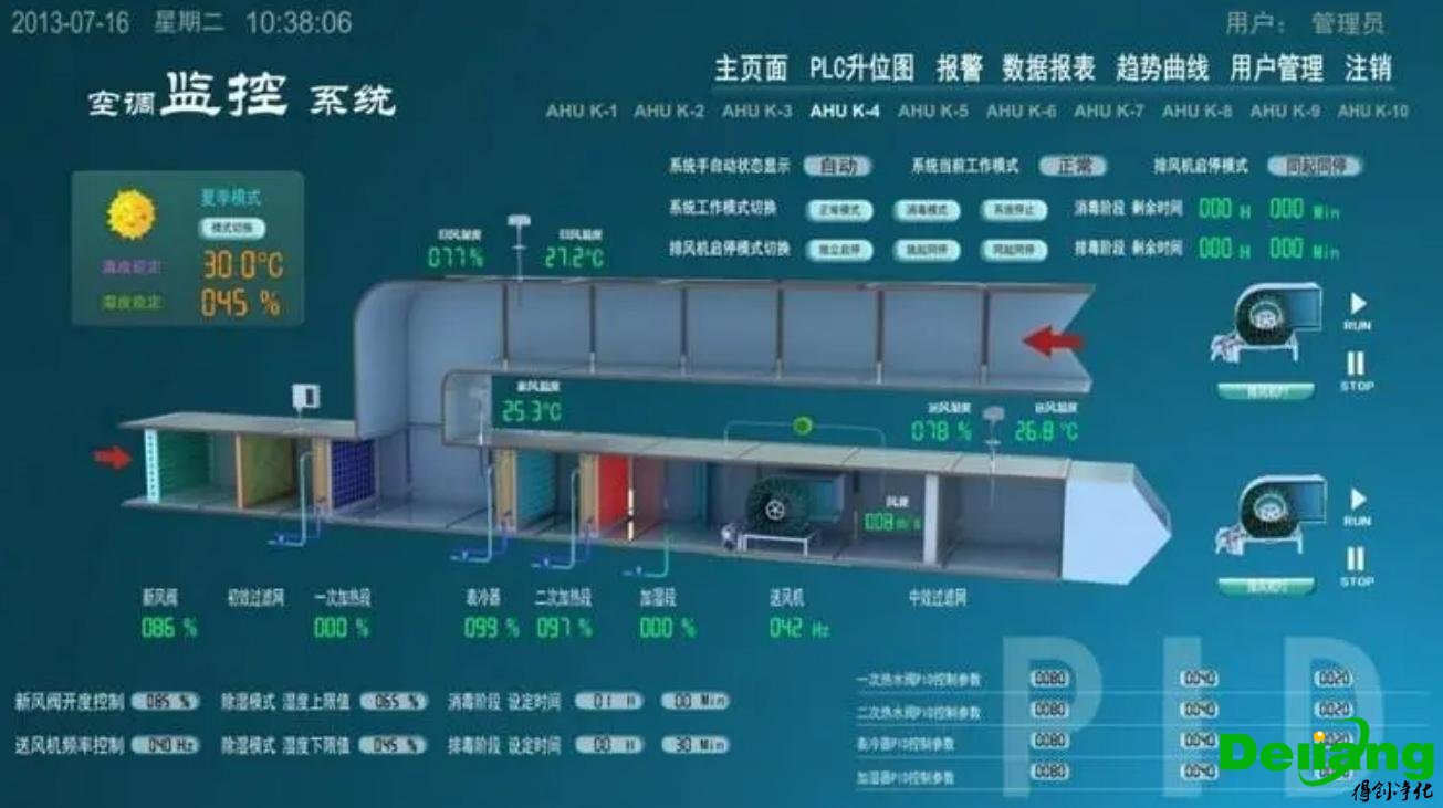 室外温度、相对湿度,各功能段后空气温、湿度,MAU出风温、湿度;